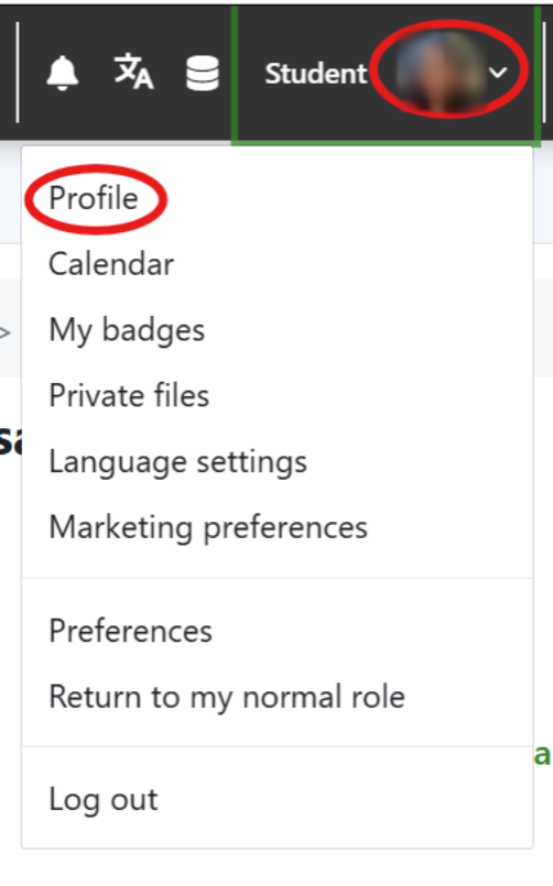 - Access your profile using the icons on the top right corner of the page, and select 'Profile' from the drop-down menu: